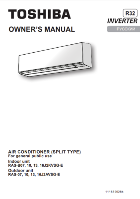 Документы и инструкция к кондиционеру TOSHIBA SHORAI EDGE DC Inverter RAS-B13G3KVSG-E/RAS-13J2AVSG-E1